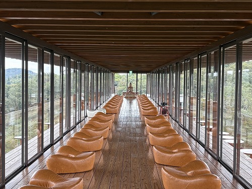 A quiet day to reset—meditation, gentle yoga, and plant-based “Zenbo cuisine” with wide views over Awaji Island. Designed by Pritzker laureate Shigeru Ban, Zenbo Seinei is an elongated timber pavilion with a 100-meter open-air deck that invites you to breathe, walk, and simply look at the sky.
